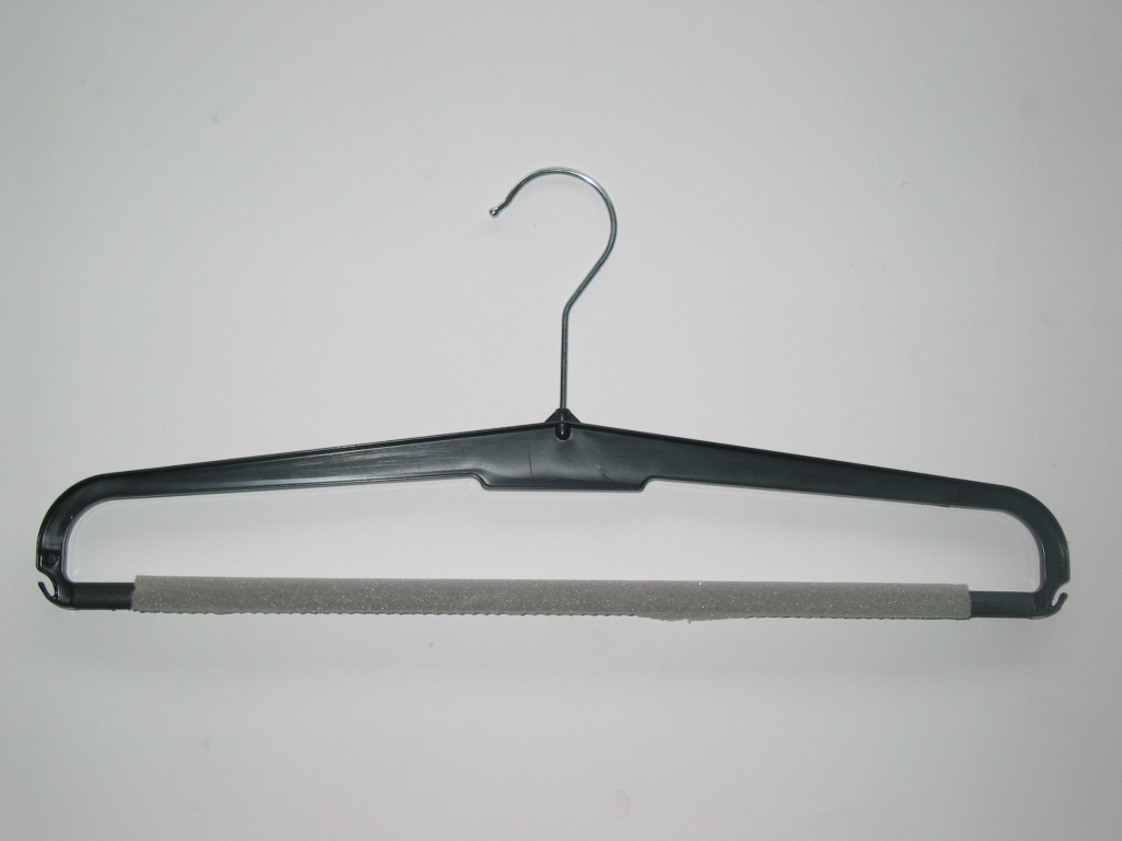 Pantalonhangers. Kunststof kledinghanger 37cm., doosinhoud 200 stuks, zwart, met foam op de broeklat.